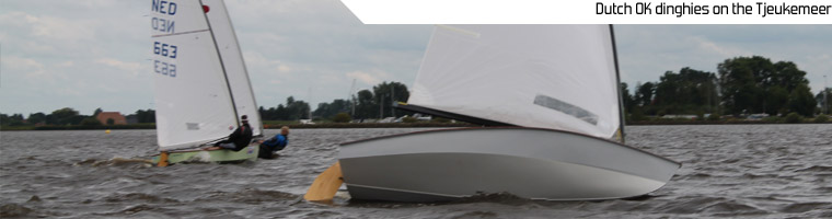 The first day was sunny and had a very nice breeze. Thirty-seven OK dinghies went on the lake Tjeukemeer for three races. There was some great racing and sportsmanship. Three sailors on top of the leaderboard with 11 points after the first day. And a great Dutch win by Sybren Hornstra in race 2. Best female is Susanne Mackmann on place 11 after day one While Kor-Marten Lok is the best saior with an aluminum mast and Rod Andrew the best sailor with a wooden mast. All to sail for tomorrow.
